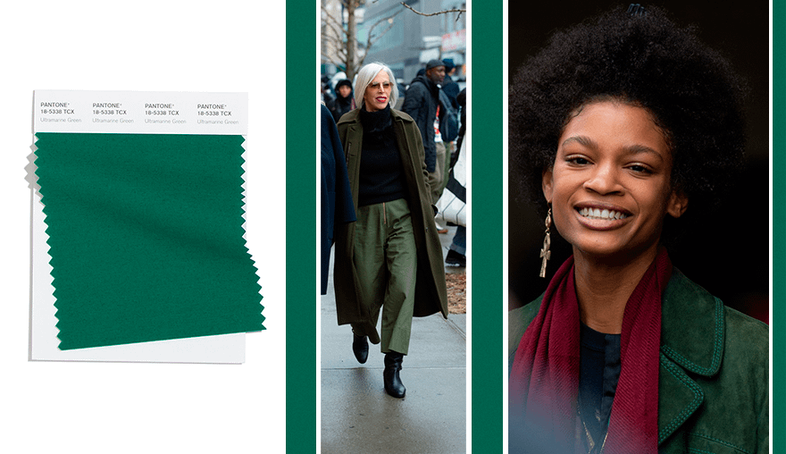 Будучи смесью зелени с синим, придает уверенность и уравновешенность. Образы с преобладанием этого цвета прижились в стритстайле. Чтобы лук выглядел более цельно, сочетай зеленый ультрамарин с черной базой и аксессуарами красных оттенков.