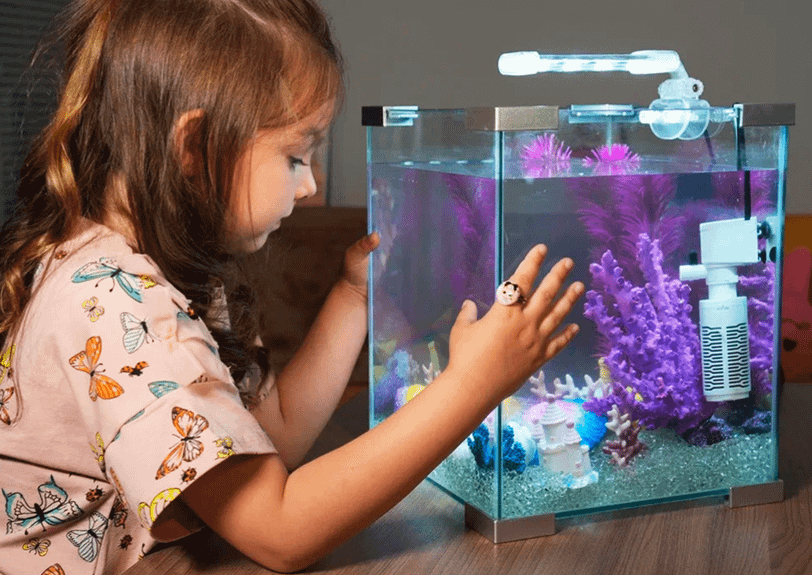 А если не хочешь собирать комплект с нуля, то присмотрись к готовым стартовым наборам — например аквариумам из линейки KID’S FUN, которые сразу оснащены встроенными фильтрами и светодиодными светильниками.