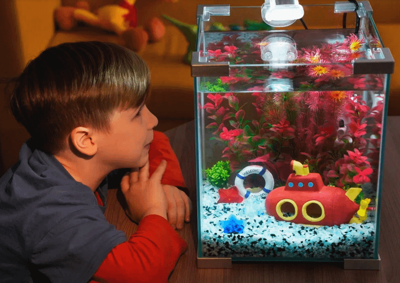 Многообразие видов рыб формирует у ребенка насмотренность, развивает его интеллект. Уже к году малыши различают все цвета, оттенки и формы — питомцы помогут исследовать мир и узнавать новое. Дети старшего возраста смогут прокачать свою фантазию и, что тоже немаловажно, оторваться от гаджетов и замедлиться. Наблюдение за рыбками успокоит нервную систему и отвлечет от игр и мультиков.