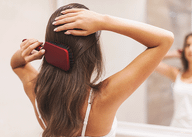 Также важно подобрать правильную расческу для волос, склонных к истончению. Выбирай щетку с закругленными пластиковыми зубцами и вентилируемой мягкой основой. Это поможет распутать волосы и легко расчесать их. Нужно делать это, начиная от кончиков и придерживая локоны руками, чтобы они не вытягивались, а затем медленно двигаться вверх.