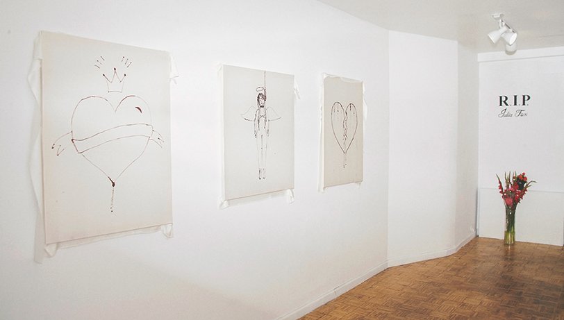 В 2017 году американская художница Джулия Фокс устроила выставку под названием R. I. P. Julia Fox. Она представила зрителям картины, написанные на шелке собственной кровью и назвала этот проект актом перерождения.