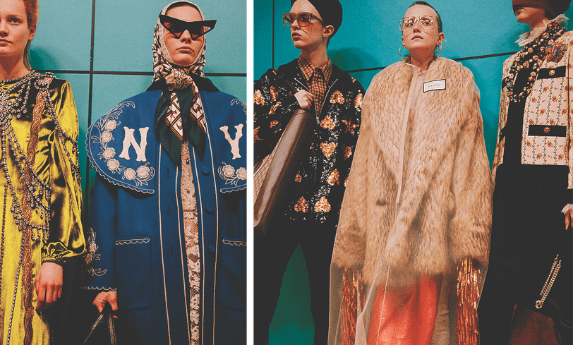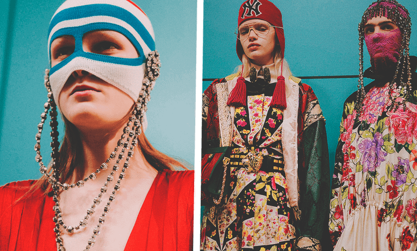 Но самый потрясающим примером изменения основных тенденций стал Алекссандро Миккеле, который создал для Гуччи работу “Манифест Киборга”. В оригинале это текст, в котором раскрывается идея отказа от понятия идентичности: киборги, монстры и гибриды размывают линии. Миккеле буквально создал собственного гуччи-киборга — биологически неопределенное существо с чужой личностью. Шоу напоминало операционную, в которой модели дефилировали с маленькими дракончиками и держали в руках реплики собственных голов. Некоторые из моделей также получили рога и еще одну пару глаз.