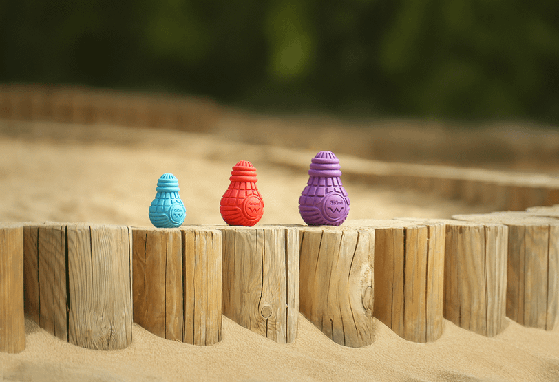Резиновая игрушка-лампочка для собак есть в трех размерах: маленьком, среднем и большом. Их наполняют сухими или мягкими лакомствами, которые постепенно выпадают во время игры.