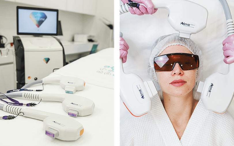 Переходя к более серьезным процедурам, мы используем несколько методик для лица: лифтинг, омоложение, работа с качеством кожи, работа с сосудистыми проявлениями. Мы обращаемся к целому спектру авторских протоколов, разработанных российскими и международными врачами. Особенно отмечу два протокола на аппарате Harmony XL: первый — Glow Flow — 7 чудес света, который дает сразу семь эстетических эффектов, второй — Cool Flame — холодное пламя, в котором сочетаются два вида лазера. Вместе они дают просто потрясающий результат.