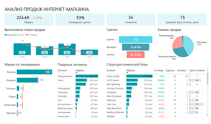 Только после этого можно приступать к работе в самой программе. Опять же, я не читаю лекции про интерфейс программы, я показываю работу на конкретных примерах: считаем премии, строим воронки продаж, анализируем клиентскую базу — все то, что будет полезно в реальных условиях.