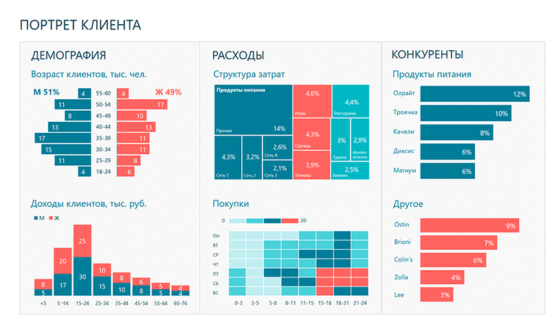 Ранее я говорил о головной боли, которую вызывают изменения исходных данных, полностью разрушающих визуализацию презентаций. Дашборды — решение этой проблемы. Они представляют собой шаблоны, которые корректно отображают изменение всех переменных, адаптируя графики. Представим, что у вас есть еженедельная отчетность по определенному направлению и вы вместо того, чтобы сперва готовить данные в Excel, а потом переносить их в Power Point, вручную выравнивая графики и подписи, вносите данные в готовый шаблон, и он адаптирует визуализацию под них. Существовать дашборды могут в разных форматах: хоть в виде приложений для смартфонов, хоть интерактивных экранов, где можно переключаться между необходимыми показателями и разделами. Это намного удобнее, чем листать презентацию на сто слайдов в поисках нужной информации.