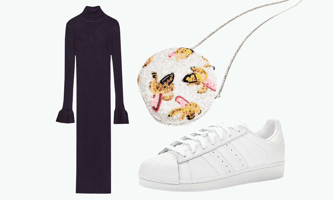 Вязаные вещи — это еще один тренд, который необходимо иметь в своем гардеробе этой весной. Самый простой фасон вроде платья-футляра любой длины отлично подойдет. Цвет его должен быть базовым, чтобы всё внимание перешло на аксессуары. В качестве аксессуаров необходимо взять что-то особенное, необычное и яркое. Мы советуем сумку в винтажном стиле. Она совершенно не обязательно должна быть действительно винтажной — главное, чтобы сохранялся стиль. А вместо каблуков или ботильонов наденьте удобные кроссовки или кеды.