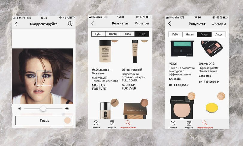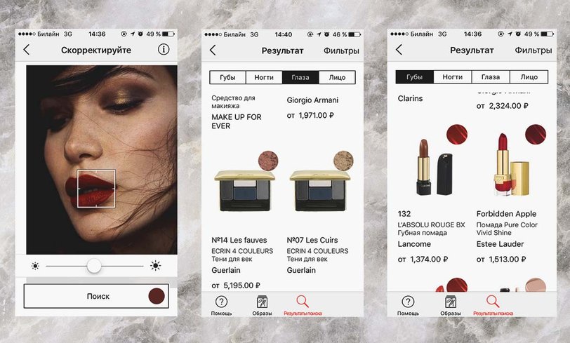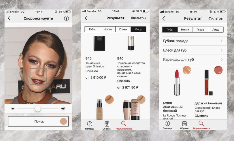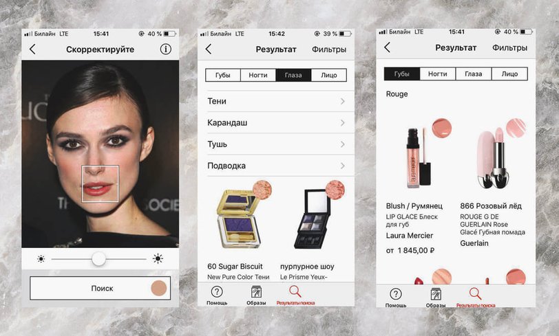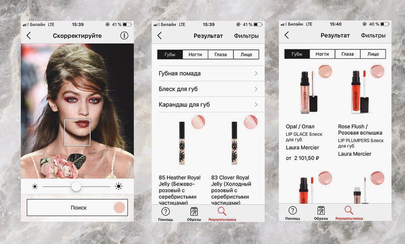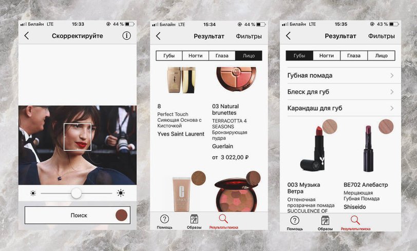 Почему это удобно: Помимо поиска необходимой косметики предложение подбирает средства, которыми можно дополнить выбранный тобой макияж. Ты увидела фото в интернете, а через 2 минуты ты уже знаешь, что именно из косметики тебе стоит докупить.
