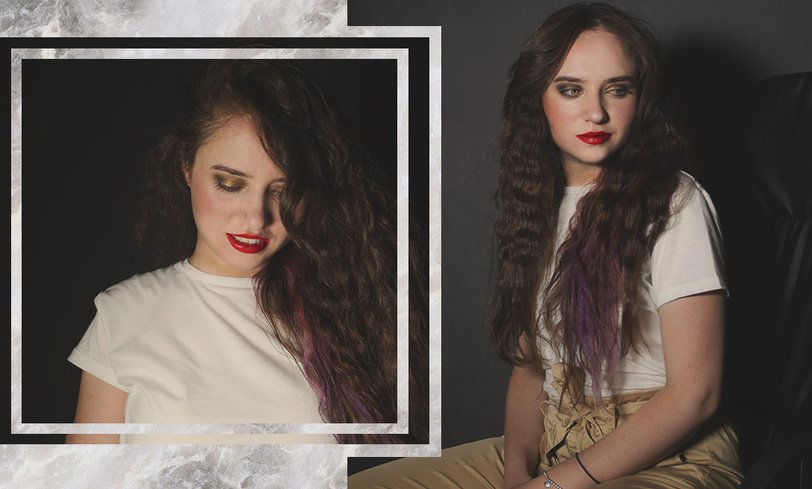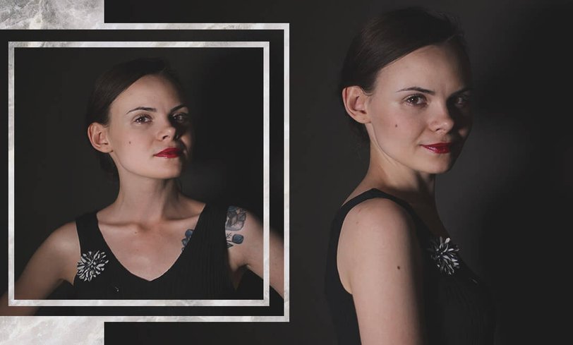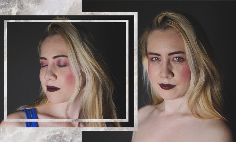 Совет редакции: У Алины очень бледная кожа холодного оттенка, и поэтому яркие розовые румяна смотрелись на ней просто идеально. Мы нанесли по скуле, на зоны хайлайтера и поднялись вверх к самому виску. Темно-бордовые губы завершили метафору, которую Алина так хотела передать: нежность и непробиваемая уверенность.