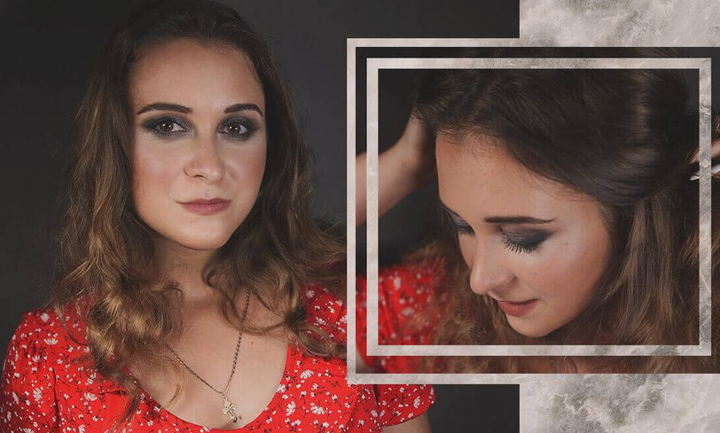 Совет редакции: У Оли от природы много веснушек на щеках и носу, поэтому мы решили восславить последний тренд и подрисовали их карандашом. Чтобы добиться таких сверкающих смоки, мы смешали нюдовую основу, сверкающие персиковые тени и немного бронзы по центру. Персиковые румяна с эффектом хайлайтера нанесли на скулы и в уголках глаз, а в качестве помады решили взять глянцевый блеск для губ светло-коричневого цвета с оранжевым полутоном.