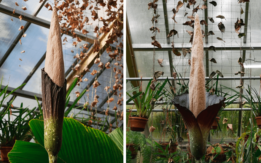 В Instagram ботанического сада Лейдена разместили фото вертикального стебля растения высотой в 180 сантиметров вместе с соцветием размером в полметра. Сотрудники ботсада также добавили, что цветок имеет не самый приятный аромат — пахнет гниющей плотью.