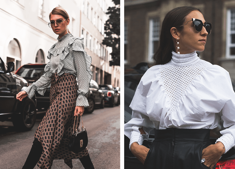 Большую популярность получили шекспировские блузы с огромными рукавами, которые сначала появились у инстаграм-брендов вроде французского MaisonCléo, а затем и на подиумах в коллекциях Christopher Kane and Roksanda’s осень-зима 2019.