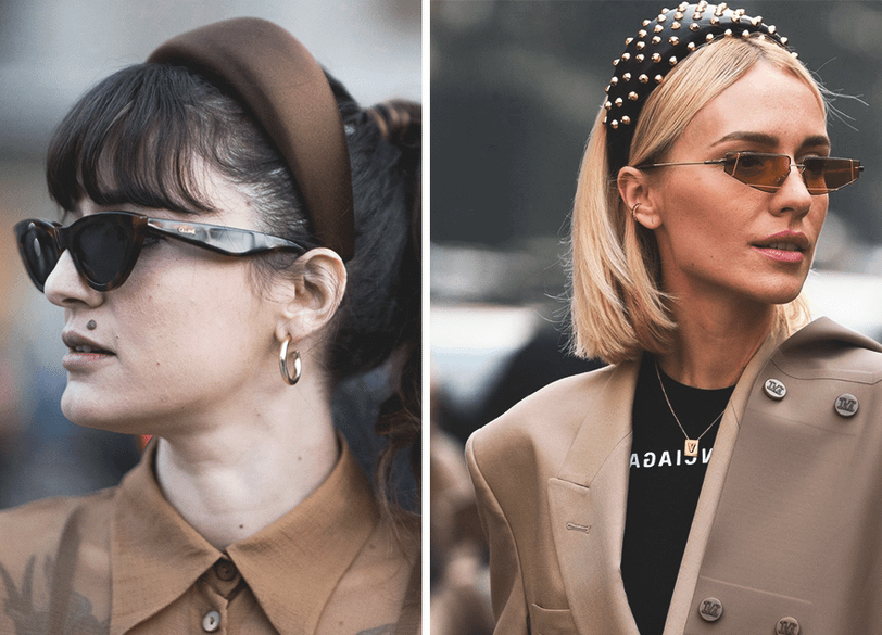 Как носить объемные, слегка напоминающие кокошники, бархатные ободки нам весь год прекрасно демонстрирует Кейт Миддлтон. Прическа должна быть очень лаконичной, главное украшение здесь – аксессуар, а вовсе не волосы. Сейчас за бархатными ободками, расшитыми бусинами, что делает их похожими на диадему, не обязательно обращаться к Prada, они есть и у демократичных марок, таких как Asos или Bershka. Достойная замена цветочным ободкам, популярным в прошлых сезонах.