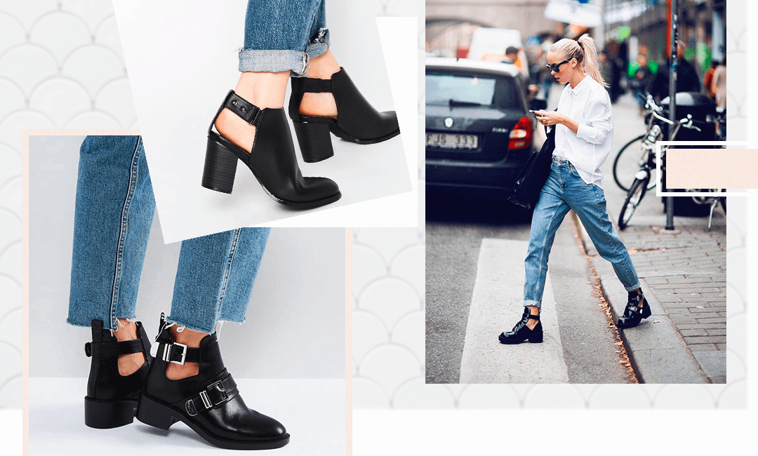 Новым этот тренд не назовешь, но ботинки и босоножки с вырезами остаются актуальными и в этом году. «Декольте» может быть где угодно: на верхней части стопы, по бокам, на пятке или носке. Отличный вариант для межсезонья, когда на улице уже достаточно тепло, чтобы открыть ногу, но на летнюю обувь переходить еще рано.