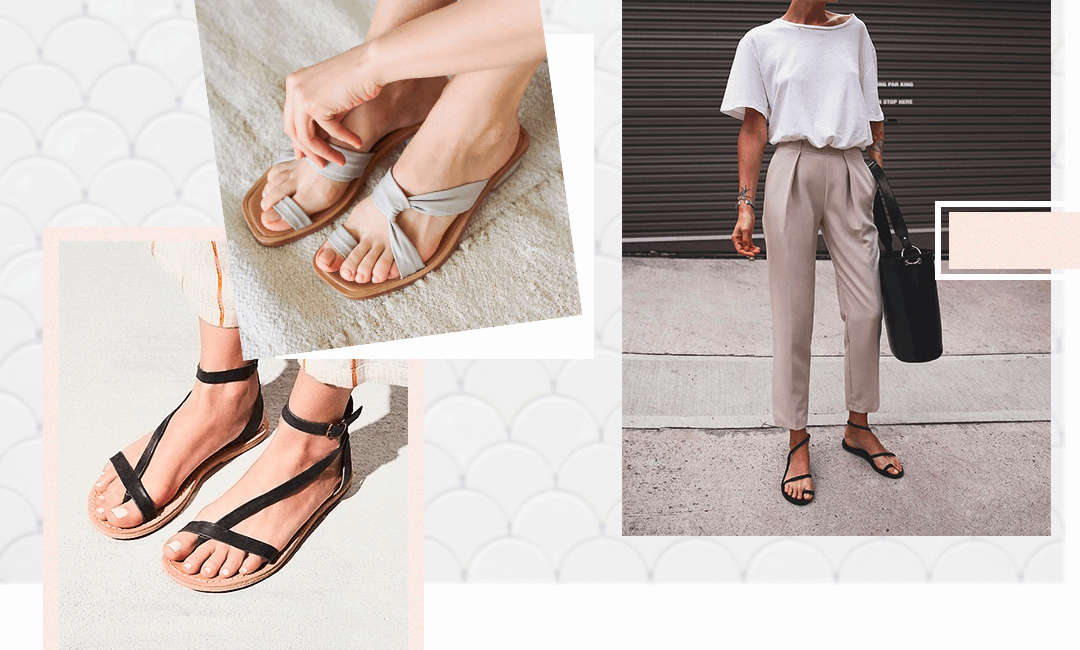 Выбирай простые, но элегантные модели: черные из материала, напоминающего замшу, или плетеные из ниток; с металлизированными ремешками золотого и серебристого цвета. Сочетай с широкими джинсами, светлыми брюками, платьями из полупрозрачной ткани.