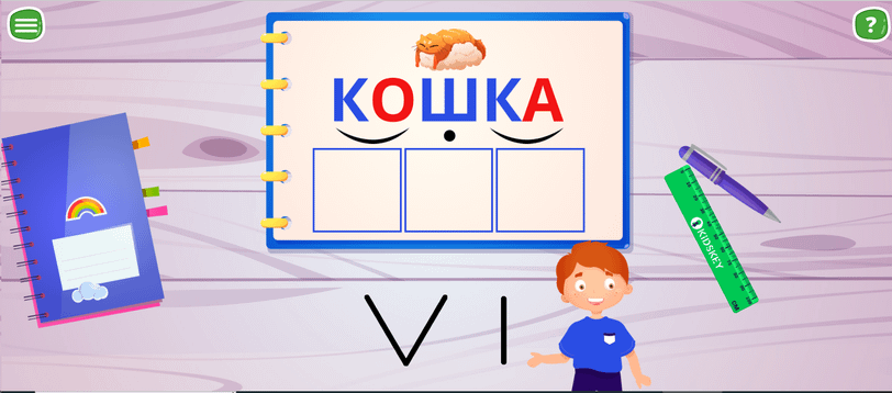 Во-первых, в методике. Мы хотим, чтобы дети не думали, что они на уроке со строгими регламентами и правилами. Ребенок приходит к нам играть: он выполняет игровые задания, похожие на игры на телефоне. Например, выбрать буквы А, найти слоги МА, объединить слово с картинкой, соединить два слога в слово и так далее. Ему настолько интересно, что он не хочет заканчивать урок.