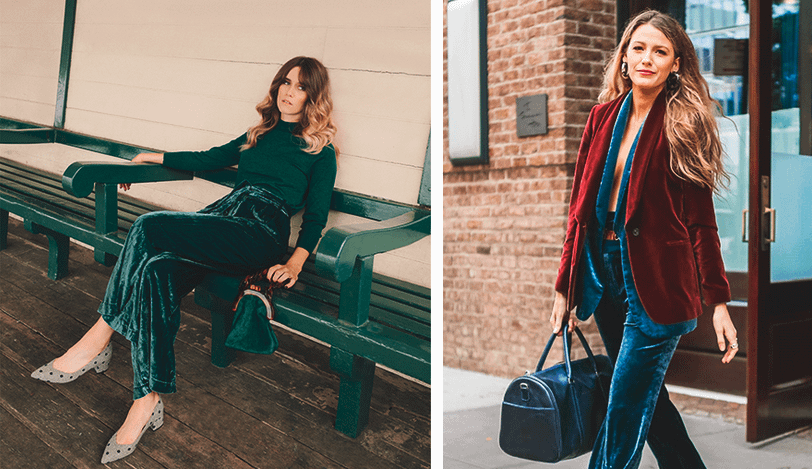 Благородной ткани — соответствующие оттенки, так что остановись на глубоких осенних и зимних цветах: изумрудном, бургунди, черном, шоколадном. Пастельные тона тоже хорошо сочетаются с бархатом, делая его более романтичным, а еще светлый бархат точно не добавит тебе возраста.