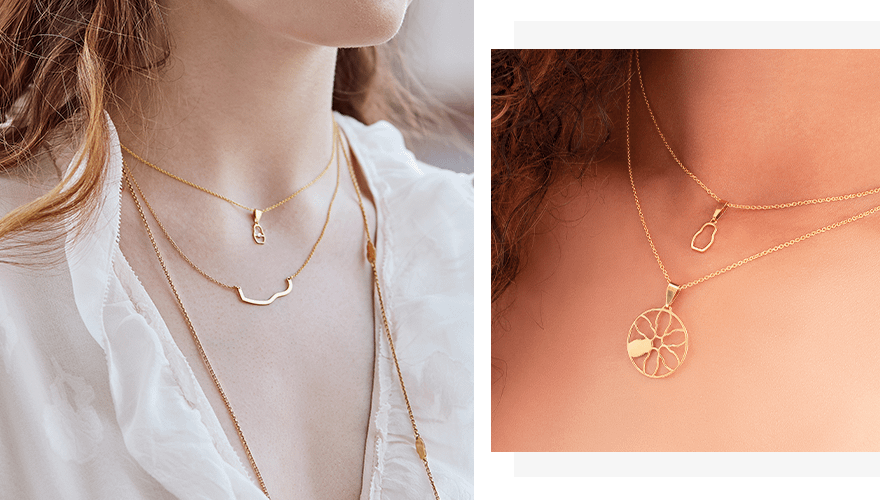 Изящное многослойное ожерелье с кулонами — идеальный выбор, когда хочется добавить в аутфит немного ненавязчивой роскоши. Украшение интересно и тем, что способно эффектно подчеркнуть зону декольте и сделать шею визуально длиннее. Плюс ко всему оно довольно универсально, поэтому отлично смотрится не только с роскошными вечерними платьями и элегантными брючными костюмами, но и с базовыми футболками, рубашками и топами на пару с джинсами и кроссовками, как носят Кайя Гербер и Белла Хадид.