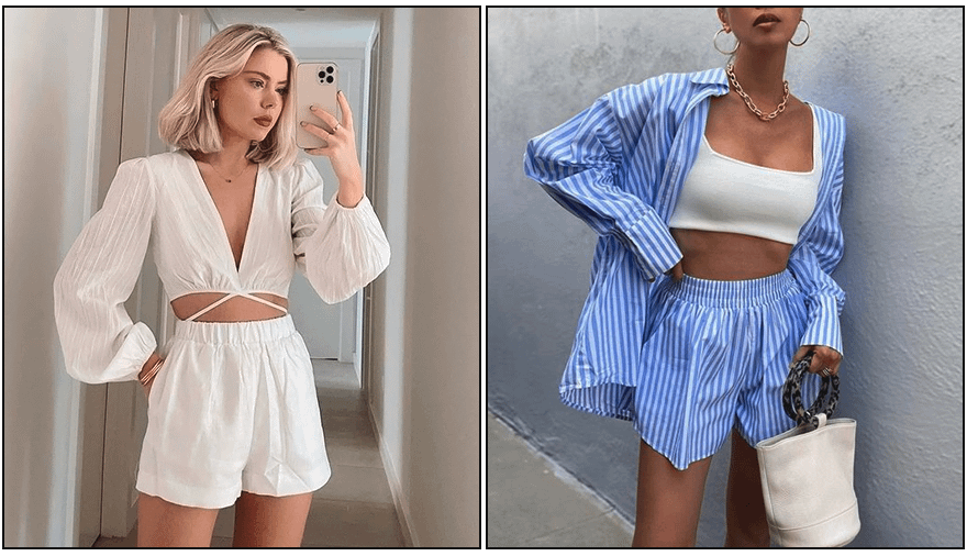 1. Льняные шорты-боксеры с рубашками и блузками