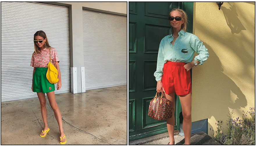 Помимо того, что выглядят такие костюмы очень стильно, они идеально подходят для прогулки жарким летним днем. Особенно актуальны яркие шелковые боксеры с лампасами по бокам и рубашки с акцентными пуговицами. Сочетать их рекомендуем либо со спортивной обувью, либо с босоножками на высокой шнуровке.