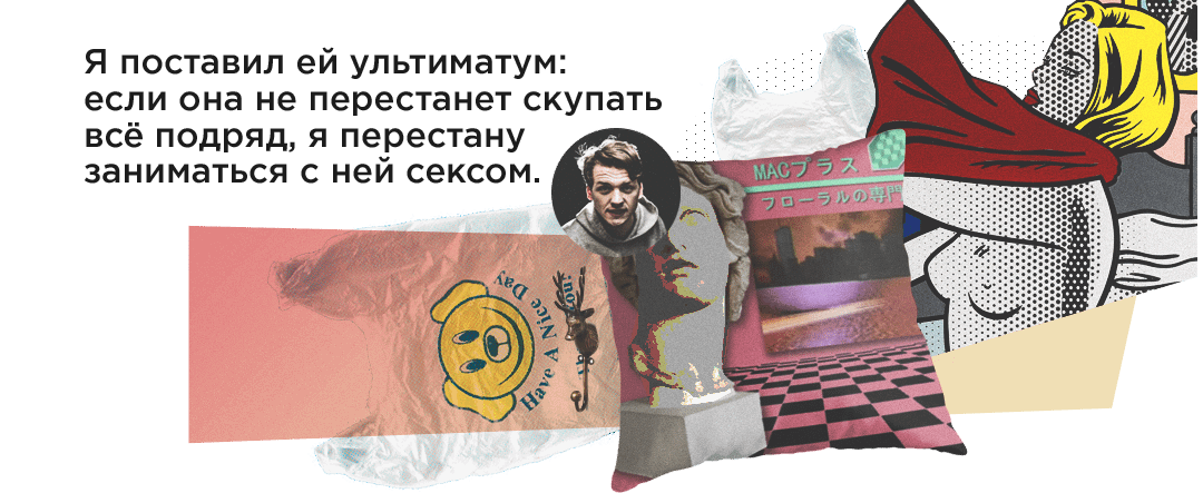 Я устал ссориться с ней из-за ее шопоголизма, ведь в итоге она начинает плакать, а после снимает стресс новыми покупками. Я поставил ей ультиматум: если она не перестанет скупать всё подряд, я перестану заниматься с ней сексом. Это не особенно помогло, поэтому мы просто разделили бюджет. Теперь она тратит свои деньги, а всё остальное, действительно нужное для жизни, покупаю я. Это невыносимо.