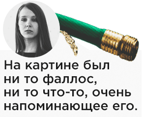 На картине был то ли фаллос, то ли что-то, очень напоминающее его, на фоне каких-то других голых тел и человеческих многоножек. Полная безвкусица!