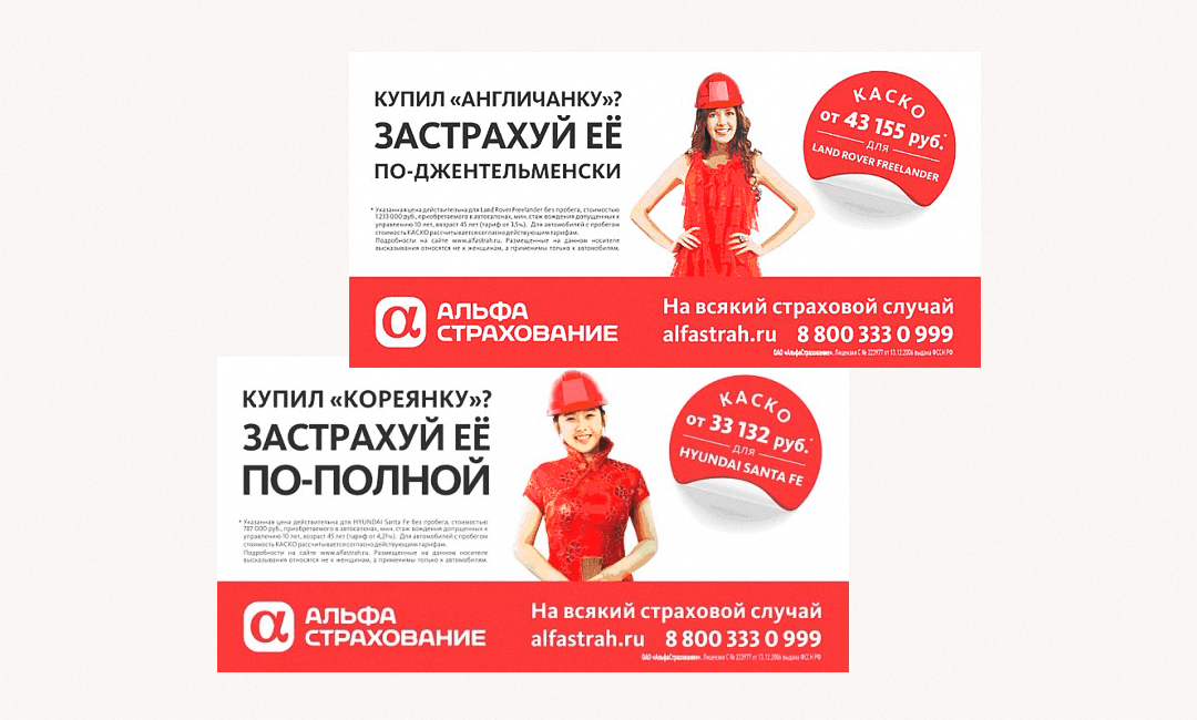 Случай с автомобилями действительно имел место в рекламном пространстве Москвы, и эта история крайне поучительна, так как общественное движение не осталось в стороне. Многочисленные жалобы активисток в УФАС помогли убрать эту рекламу с биллбордов. Так что вывод тут один: если вы видите оскорбительную рекламу, то не молчите, а жалуйтесь и делитесь новостями через социальные сети и блоги. Только так можно остановить распространение унизительных сексистских стереотипов.