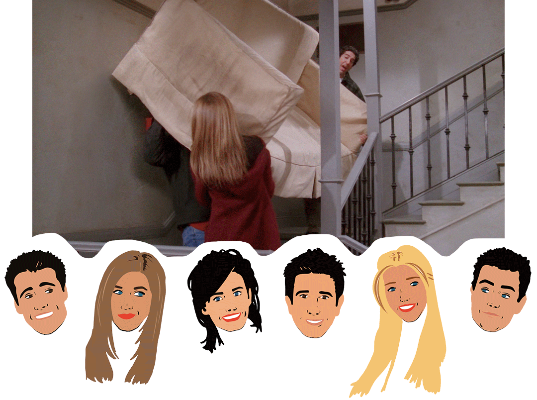 Росс покупает диван и просит Рэйчел и Чендлера помочь занести его в квартиру. Именно в этом эпизоде рождается воинственный клич Росса «Pivot!», который повторяется много раз, но никто так и не узнает, что это значит.