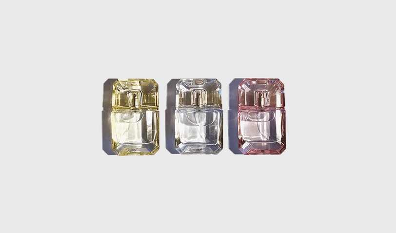 В нее входит три аромата, каждый из которых представляет одну из Кардашьн: флаконы в форме бриллиантов носят названия Yellow (Кортни), Diamond (Ким) и Pink (Хлои).
