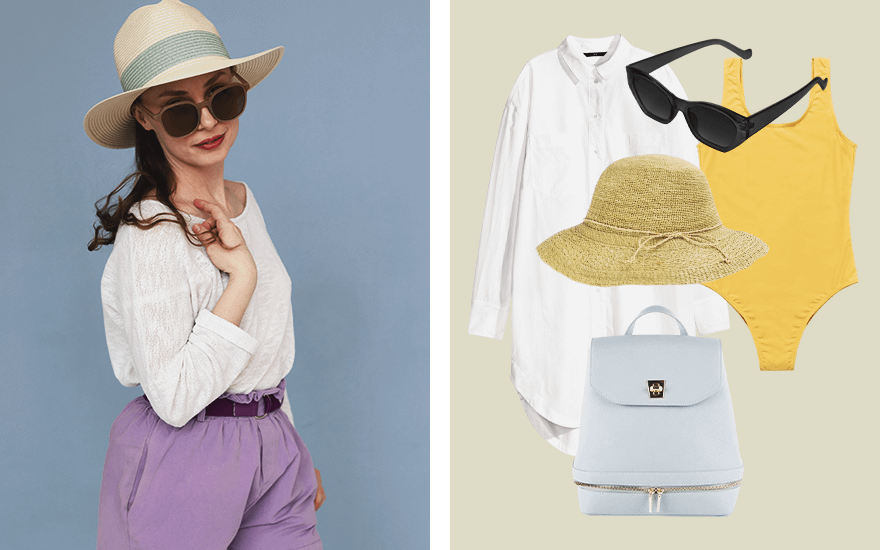 Образ на пляж — это не только симпатичный купальник и модные шлепки. Морские луки лучше всего составлять из легких тканей, таких как хлопок и лен, а также приглушенных оттенков цветов, которые отражают солнечный свет. Универсальный набор вещей — это объемные рубашки и футболки, туники, топы и шорты. Но не стоит забывать об аксессуарах — именно они помогут тебе выделиться из общей массы туристов. Очки, платки и шляпки — обязательные спутники летних образов.