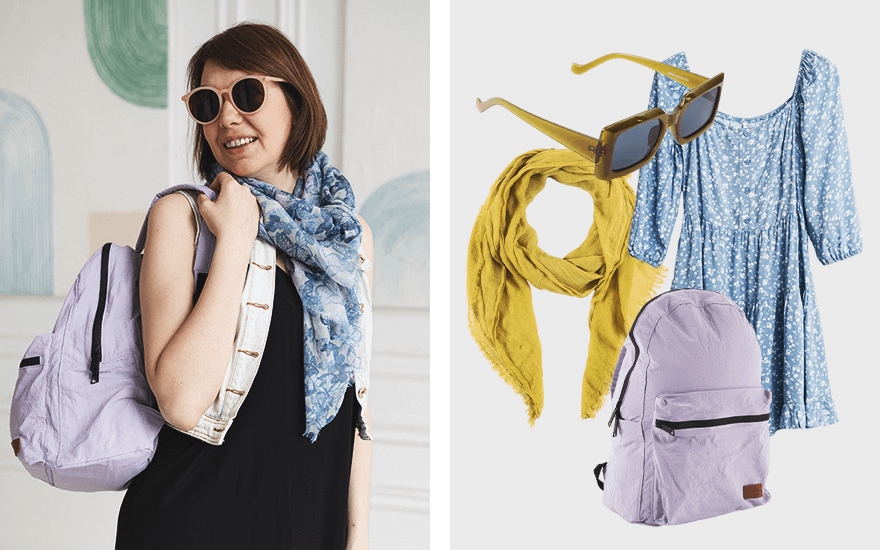 Чтобы путешествия проходили без лишних забот и стрессов, надо заранее позаботиться о том, что ты будешь носить. Мы советуем собрать образы по принципам капсульного гардероба — так вещи не займут много места в чемодане и будут гармонировать между собой. Если ты едешь отдыхать с ручной кладью, купи удобный рюкзак, который будет подходить по стилю и цвету к твоим вещам.