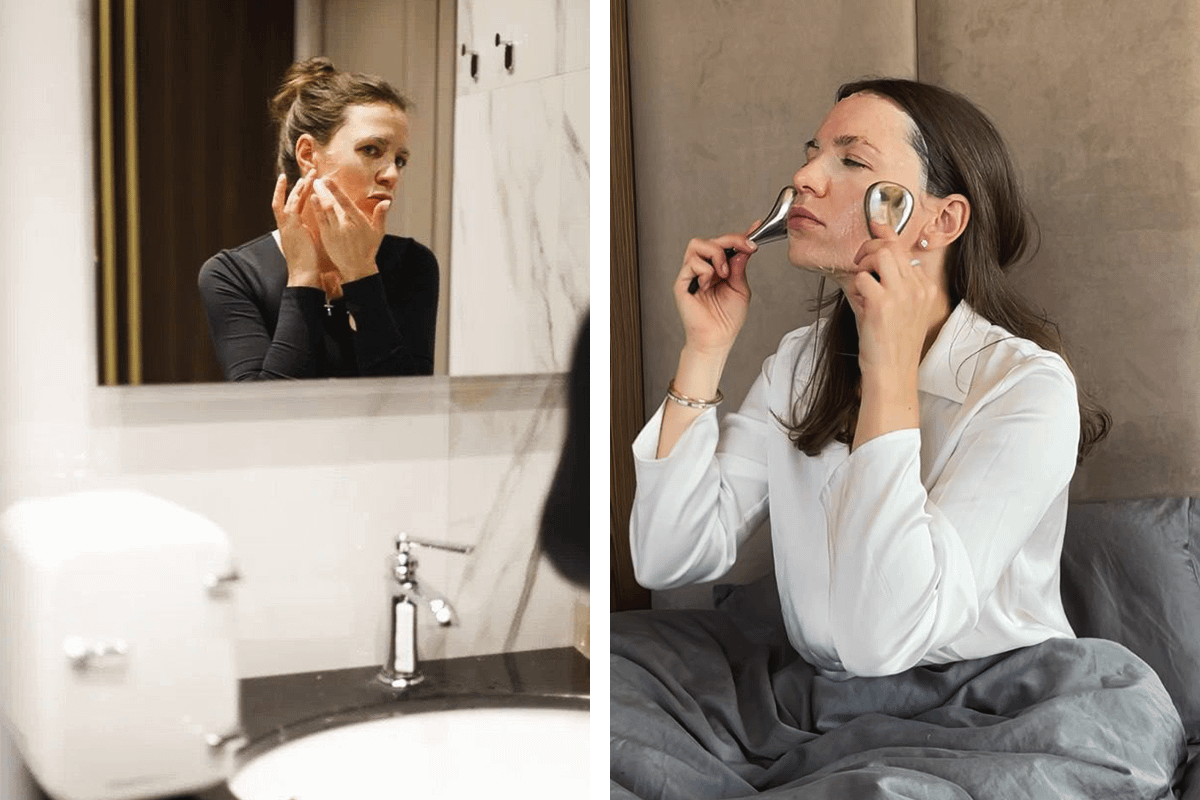 Мне нравится эффект от LED-маски, микротоков и массажа с помощью криопалочек или ледяной сферы. Они помогают справиться с отеками, подсушить воспаления и улучшить контур лица.