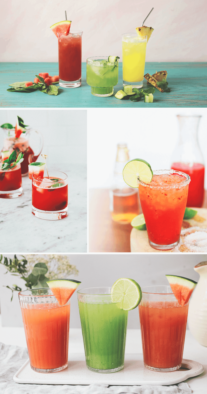 Технология одна для всех рецептов: смешать фрукты с водой в блендере, процедить через ситечко, по желанию добавить сахар и охладить. Воды должно быть примерно в два раза больше, чем фруктов, хотя в случае с арбузом или огурцом дополнительная вода может вообще не понадобиться.