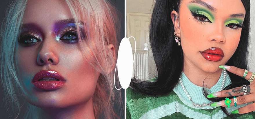 Глянцевые губы особенно хорошо будут выглядеть в сочетании с необычными стрелками для глаз. О том, какие виды стрелок популярны в этом сезоне и как научиться рисовать их, мы рассказывали здесь.