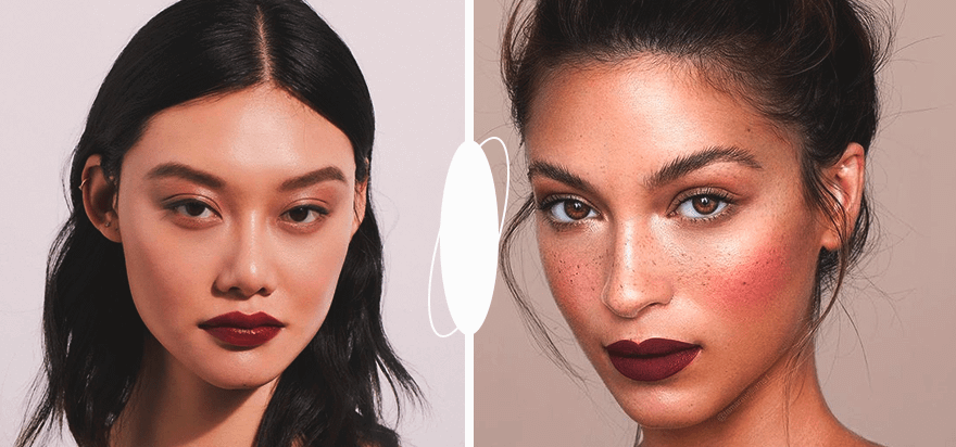 Этот вариант идеально подойдет, если ты хочешь создать макияж с акцентом на губы. Помада в оттенках винного или бордового цветов подходит девушкам как со смуглой, так и аристократично бледной кожей. Правда, подойдет она больше для вечернего макияжа. Днем слишком акцентные губы могут выглядеть агрессивно.