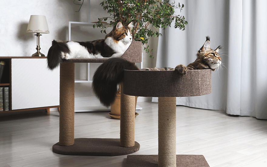 Если тебя часто не бывает дома, вместо удочки лучше купить полноценный игровой комплекс. С ним кошка сможет развлечь себя самостоятельно: обычно в конструкцию входят домик, когтеточка и игрушки-дразнилки. Благодаря наличию нескольких ярусов комплекс станет для кошки отличным местом для безопасных тренировок: она сможет лазать и прыгать без угрозы перевернуть твою любимую вазу или вещи с верхних полок.