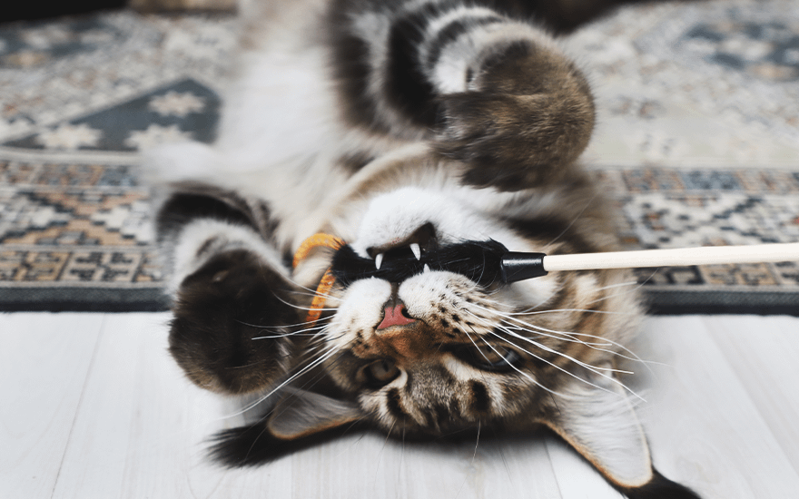 Потребность в активности у домашних кошек такая же, как у диких или уличных. Чтобы питомец не скучал и не хулиганил, с ним нужно регулярно играть. Приучать кошку играть с руками — плохая идея, поскольку она может заиграться, случайно поцарапать тебя или укусить. Чтобы игра была безопасной для тебя и интересной для питомца, воспользуйся удочкой-дразнилкой — она поможет кошке почувствовать себя настоящей дикой охотницей.