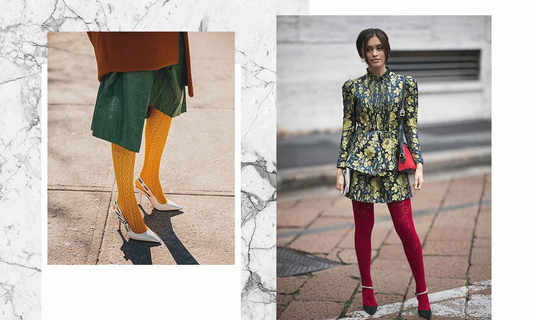 Добавить образу весенней свежести можно и с помощью колготок сочных оттенков. Смело бери модели с принтами, логотипами, узорами и надевай с любимыми платьями и юбками. Сочетать яркие колготки можно хотя бы с одним элементом образа, например, сумочкой. Хотя, как мы уже выяснили, стремиться к гармоничной цветовой гамме вовсе не обязательно.