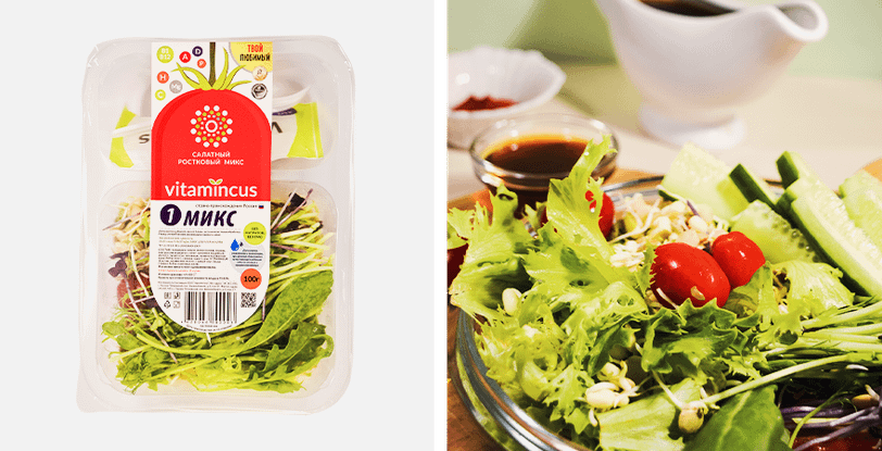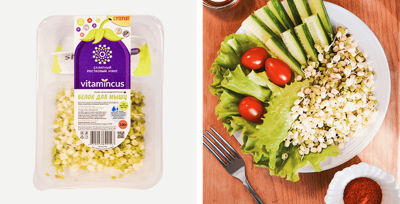 Быстрее и проще заказывать микрозелень онлайн. Готовую продукцию Vitamincus можно найти на маркетплейсах Ozon и Самокате. Или купить в таких магазинах, как Перекресток, О’кей, Globus и SPAR. Все ростки были выращены в теплицах под особым контролем, так что ты получишь максимально свежий продукт. Например, в «Микс 1» входят проростки фасоли маш, чечевицы, семена льна, микрозелень гороха и редиса, кудрявый салат, руккола. Соедини его с соусом и съешь, как отдельное блюдо, или используй в качестве гарнира.