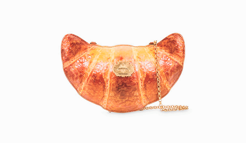 На показе Moschino осень–зима 20–21 Джереми Скотт представил коллекцию, посвященную стилю Марии-Антуанетты. Дополнить ботфорты на шнуровке и пышные юбки способен только один по-настоящему французский аксессуар — сумка в виде круассана.