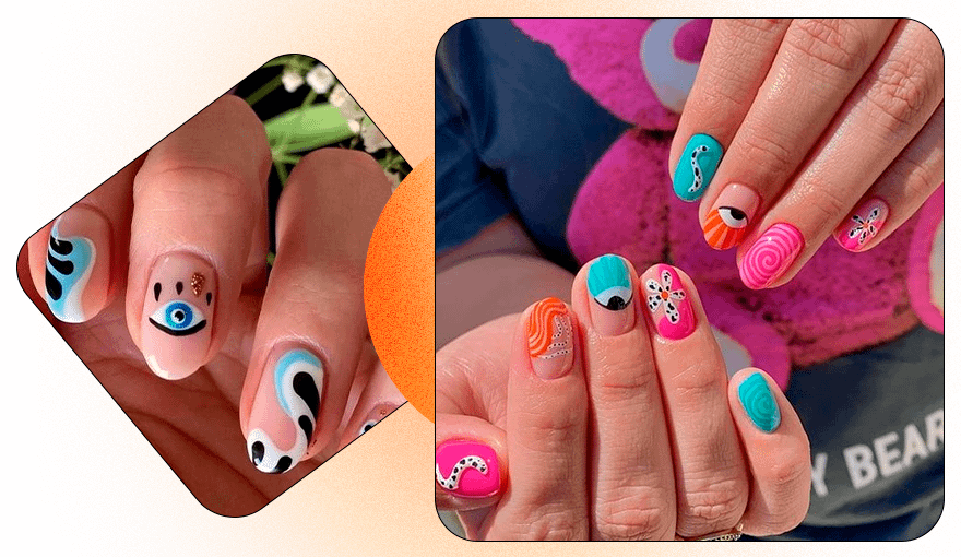 Например, ты можешь попросить мастера нарисовать на одном ногте радугу, на другом — солнце, а на третьем — смайлик или животное. Чем более разнообразным и ярким получится результат, тем лучше.