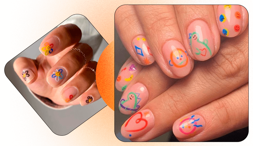 Кидкор — это направление в моде, которое подразумевает включение во взрослый гардероб элементов детского. Если этот тренд кажется тебе интересным, попробуй создать маникюр с детскими рисунками.