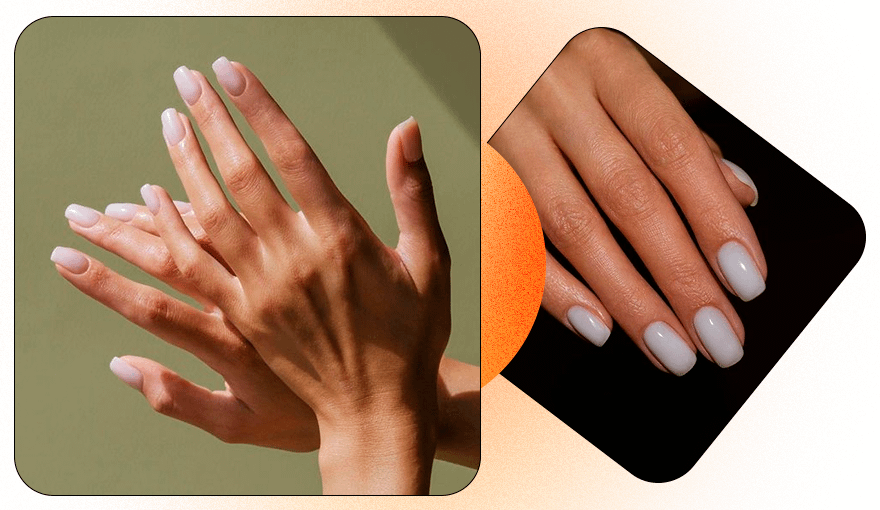 Если плотный белый цвет тебе не нравится, попроси мастера смешать светлый лак с прозрачной базой. Тогда маникюр получится более воздушным.