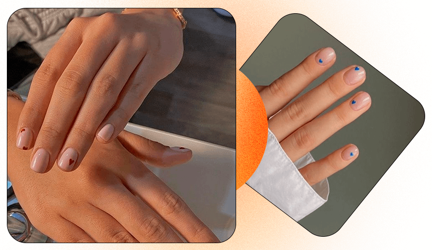 Кстати, лучше всего дизайн в форме сердечек сочетается с прозрачным или светло-бежевым лаком. Тогда ногти выглядят особенно аккуратно.