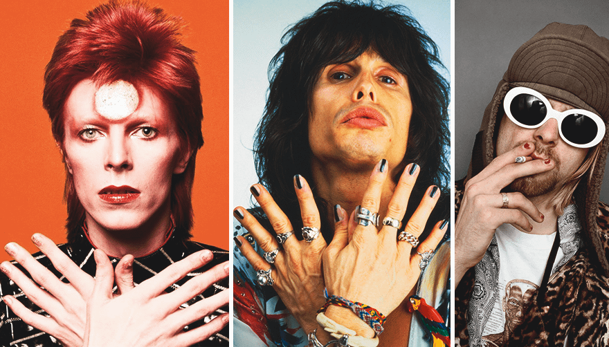 Это случилось в 70-е с подачи рок-звезд. Тогда экспериментировал с образами Дэвид Боуи — певец предстал в образе Зигги Стардаста, отличавшегося вычурностью. Фанатам надолго запомнилось сочетание его огненно-рыжей прически маллет и бирюзовых ногтей.