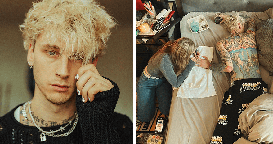 Рэпер появлялся с яркими ногтями часто. Например, на церемонии, посвященной коллаборации PUMA, Balmain и Кары Делевинь, MGK был с красным маникюром. Он часто иронизирует над собой и выкладывает снимки работы над маникюром — фолловеры нередко шутят, что его мастер по ногтям может оформить руки в любых условиях.
