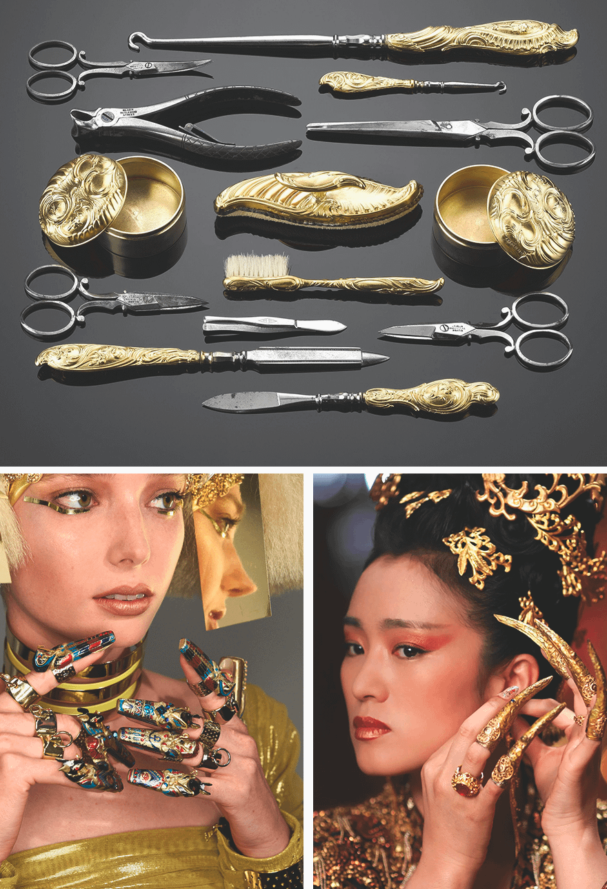В Египте принадлежность к высшему сословию передавал ярко-красный цвет, в Древнем Китае для этого использовали золотые и серебряные оттенки. Дворяне при этом носили очень длинные ногти, показывая, что могут позволить себе не заниматься ручным трудом.