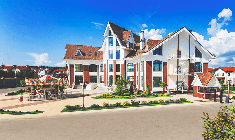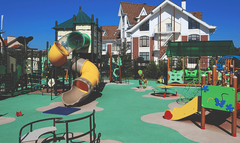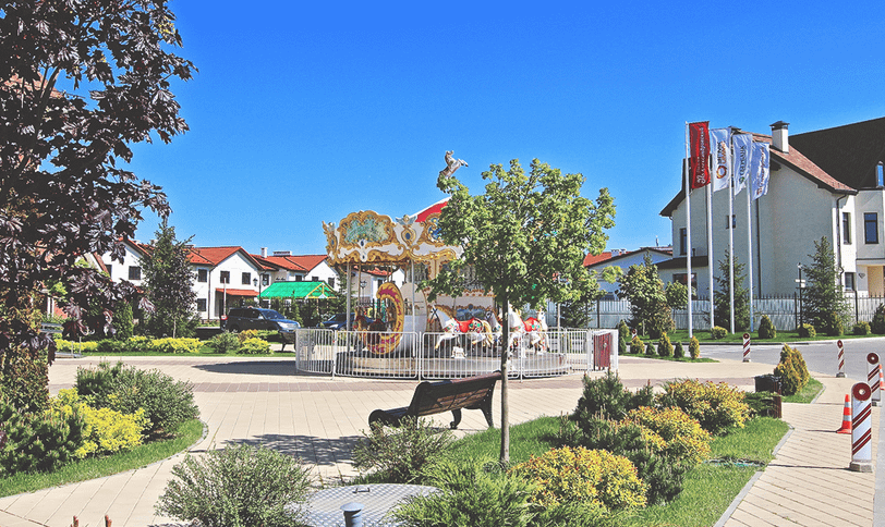 Поселок понравится семейным парам с детьми, здесь есть все для их развития: игровые площадки с каруселями, спокойные прогулочные зоны для мам с колясками, аквапарк, бассейн.