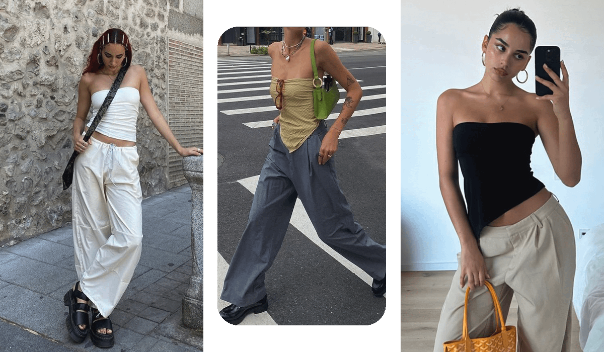 Вдохновляйся винтажными образами Кейт Мосс и Аманды Байнс, если хочешь создать лаконичный лук с однотонным топом. Более яркие аутфиты любили создавать Бритни Спирс и Пэрис Хилтон. Используй широкий ремень, чтобы дополнительно подчеркнуть талию. Если готова к модным экспериментам, сочетай топ-бандо с джинсами с низкой посадкой.