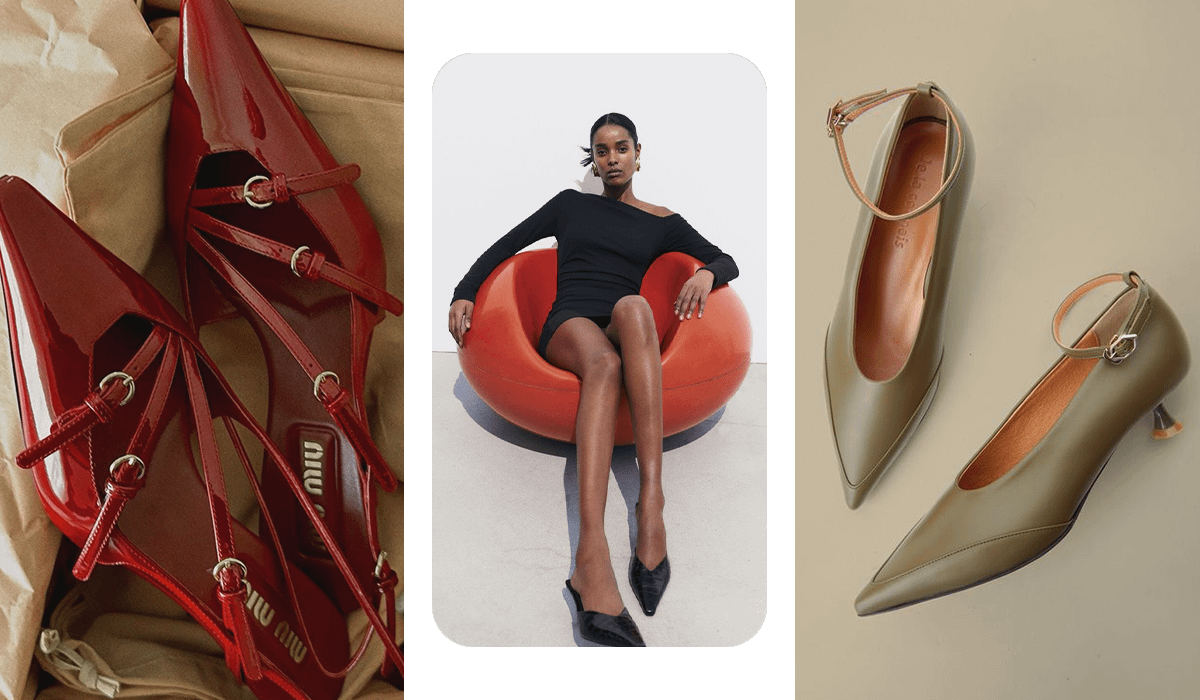 Примерь туфли или балетки с острым носом, если пока не готова отказываться от красоты ради комфорта. Актуальны модели как из матовой, так и из лакированной кожи. Особенно в черном и насыщенном бордовом оттенках.